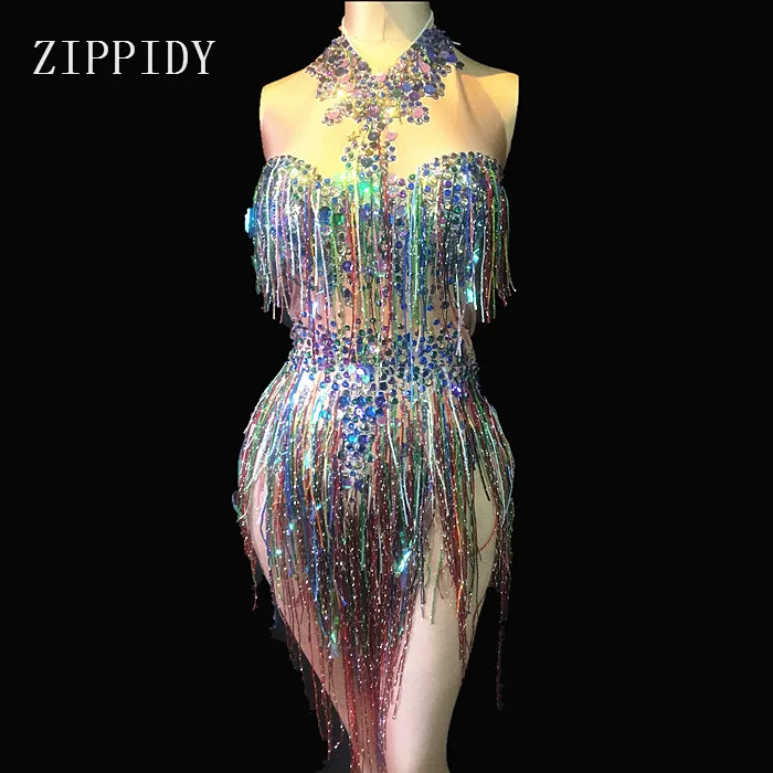 Buy Colorful Fringes Rhinestones Bodysuit Women Stage Dance Costume Nightclub Dance Female Singer Show Bright Leotard and You will Save USD 9.44 or 16% %, Because You Just Pay for 49.56 not Full Price for 59.00